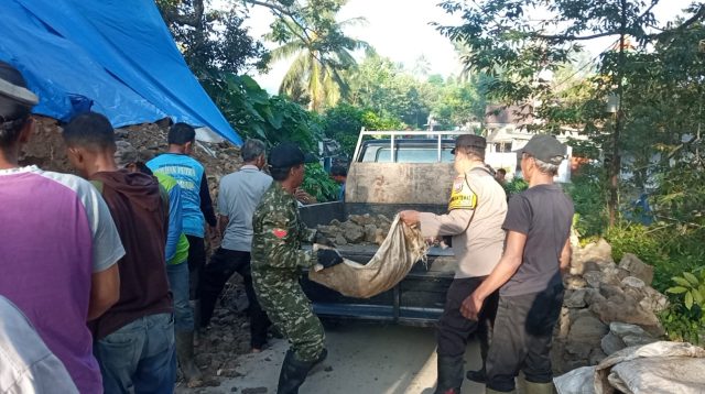 Babinsa dan Warga Tileng Bergotong Royong Bersihkan Longsor Susulan di Pokolimo
