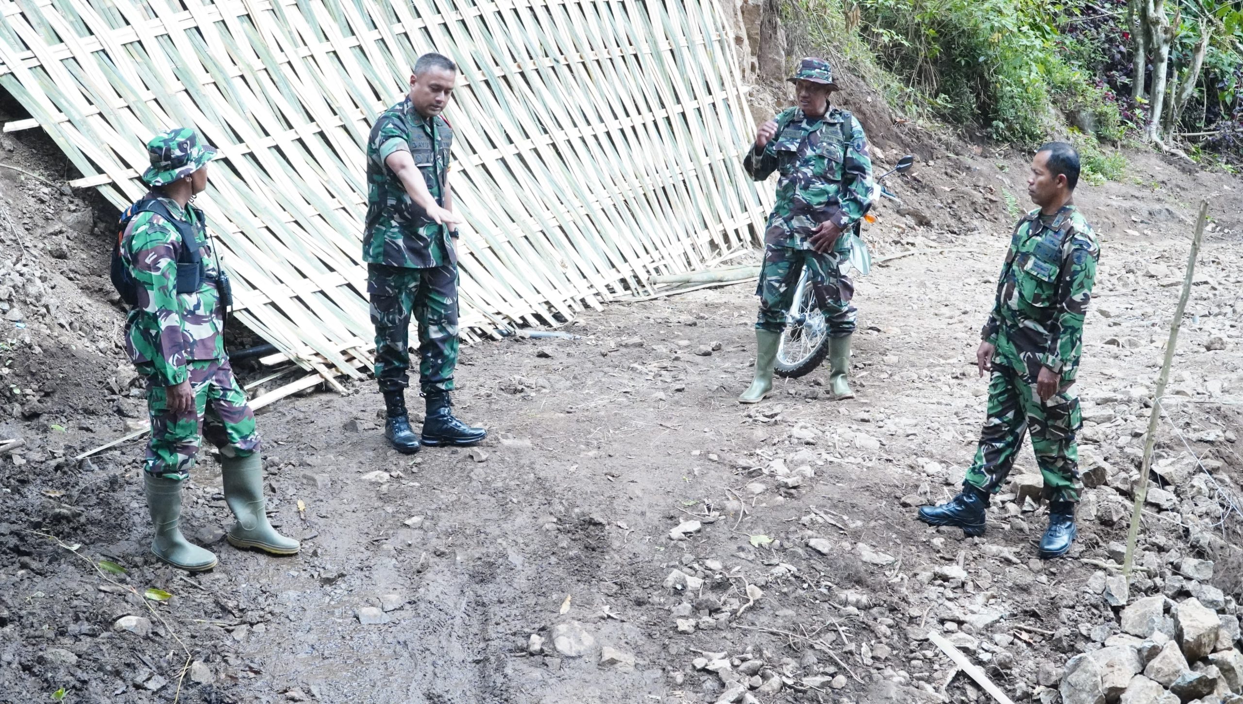 Dalam kesempatan tersebut, Letkol Kav Widhi Bayu Sudibyo melakukan peninjauan langsung untuk melihat perkembangan pekerjaan sekaligus mengidentifikasi kendala teknis yang dihadapi di lapangan. Beberapa hambatan seperti medan yang masih berupa kawasan hutan dengan vegetasi lebat, kondisi tanah yang labil, akses alat berat, serta faktor cuaca menjadi perhatian utama.