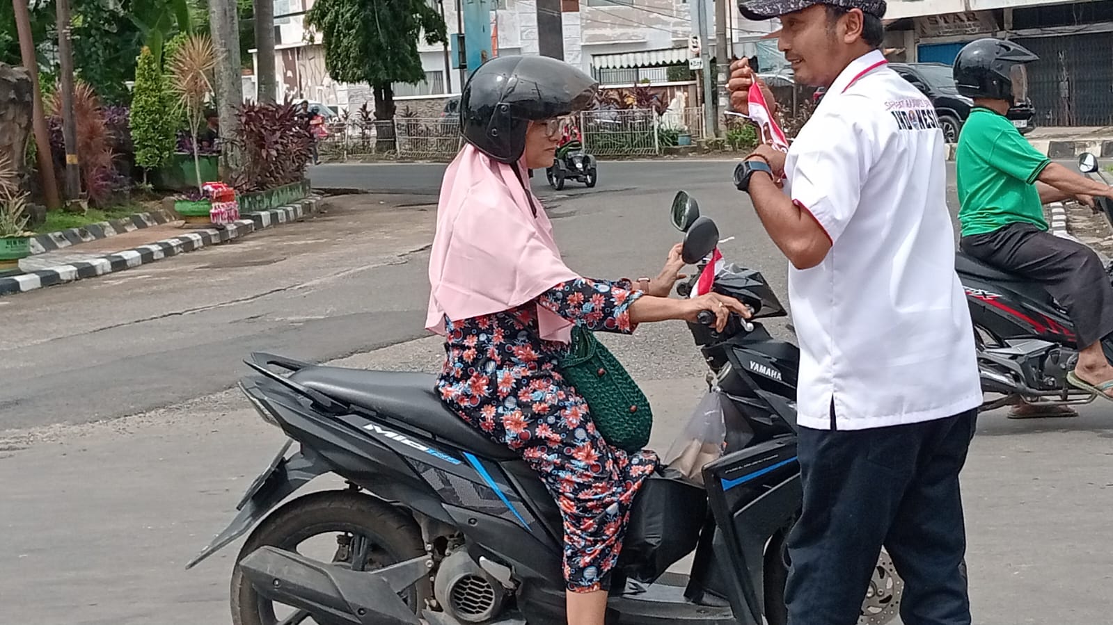 Dalam pengikatan bendera di tiang spion kendaraan bermotor, berujar seorang pengendara, ” Dikira bendera one peace yang beredar viral di media sosial.