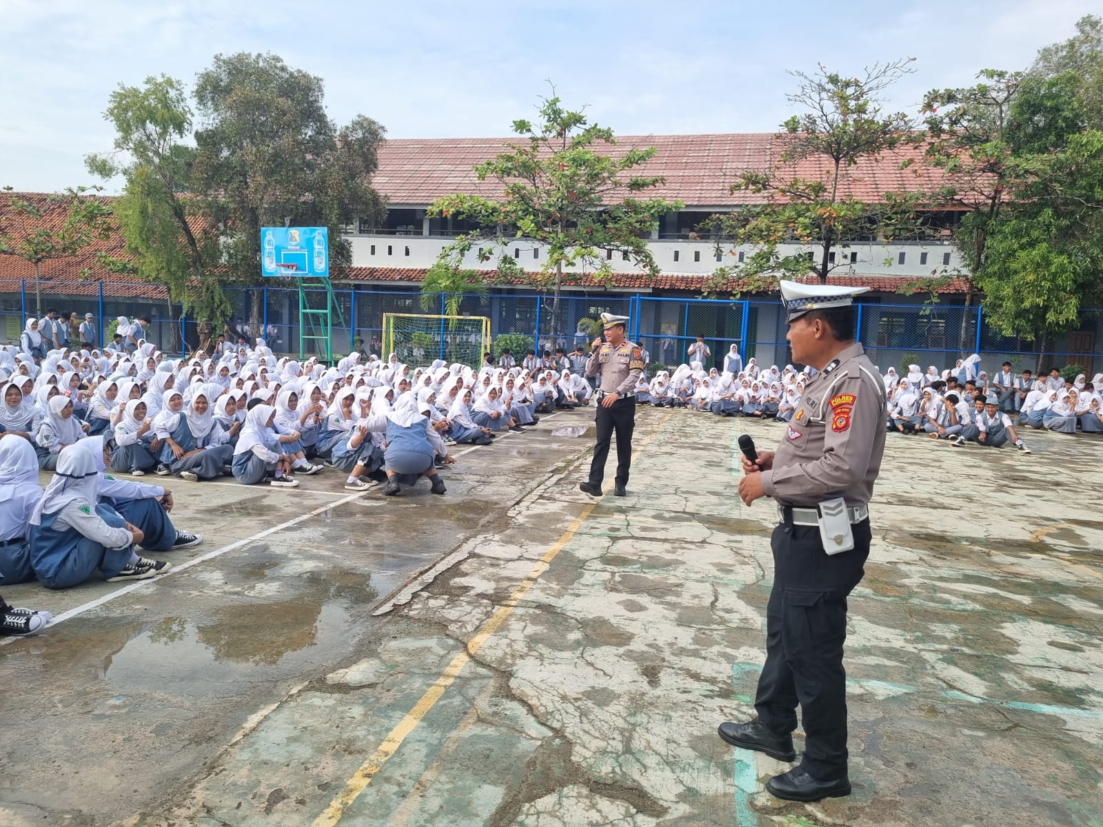 Indramayu – Dalam upaya menekan potensi kenakalan remaja, Satuan Lalu Lintas (Satlantas) Polres Indramayu Polda Jabar melakukan sosialisasi Maklumat Kapolda Jawa Barat di SMAN 2 Indramayu.