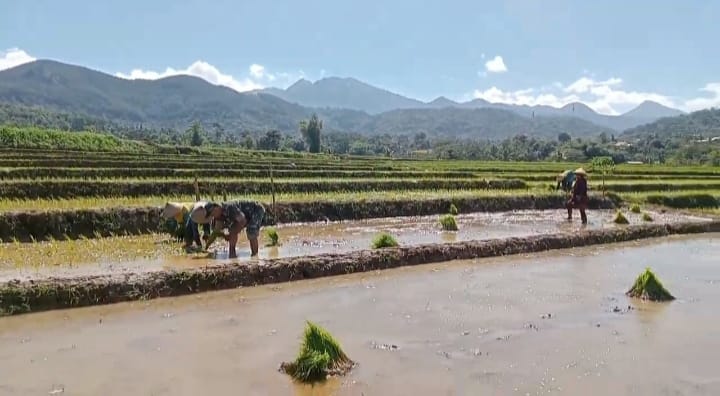 ” Salah satu kegiatan kami hari ini yaitu membantu Bapak Warno dan keluarga yang tergabung dalam Poktan (Kelompok Tani) Giri Mulyo dan sedang melakukan aktivitas penanaman padi di lahan pribadi, ” ucap Kopka Edi S.