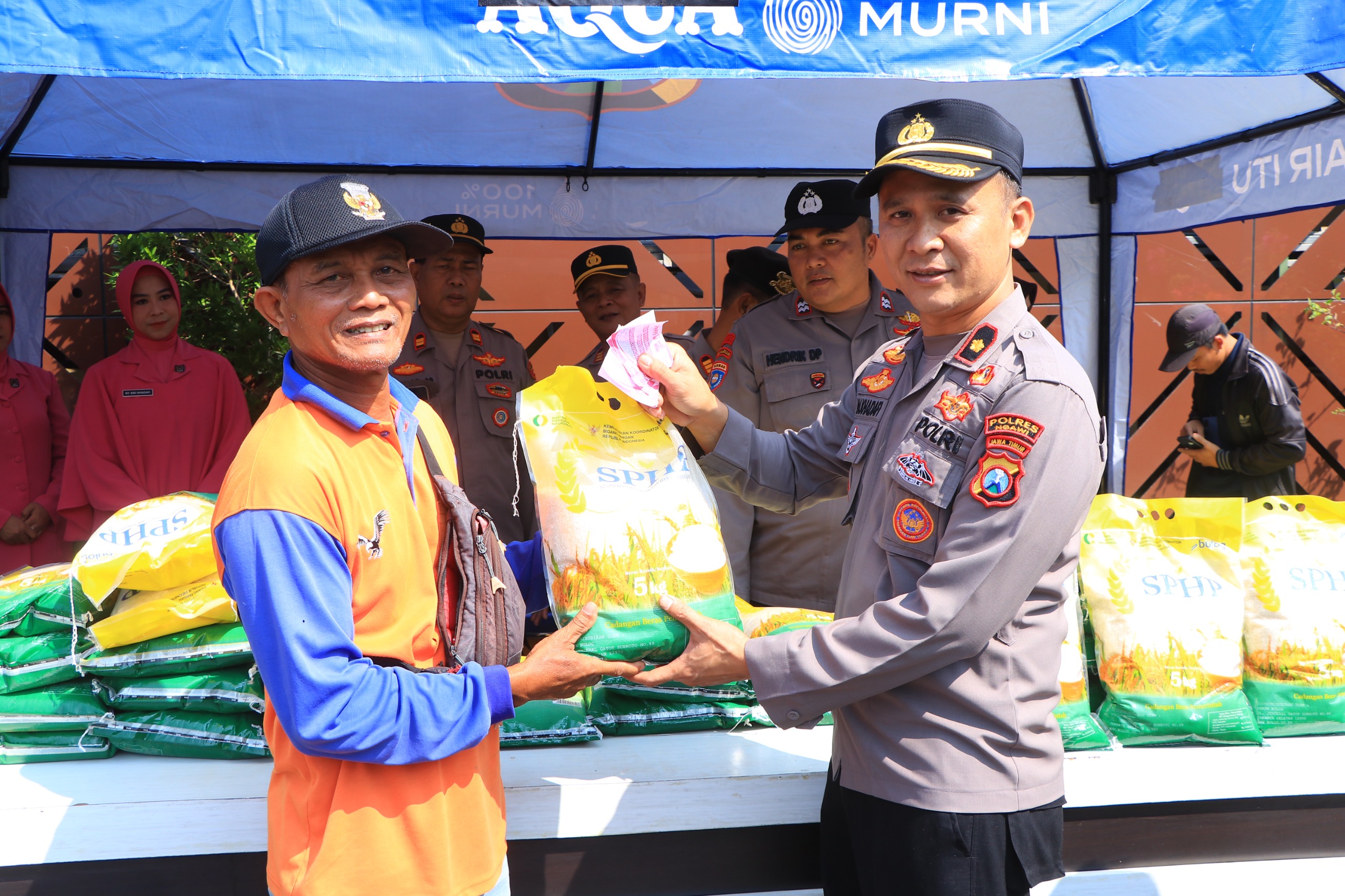 Beras yang disalurkan kepada masyarakat oleh Polres Ngawi dan Polsek jajaran, sejumlah 20 ton beras SPHP (Stabilisasi Pasokan dan Harga Pangan) yang disediakan oleh Perum Bulog Cabang Madiun dan dijual dengan harga Rp. 11.500,- perkilonya.