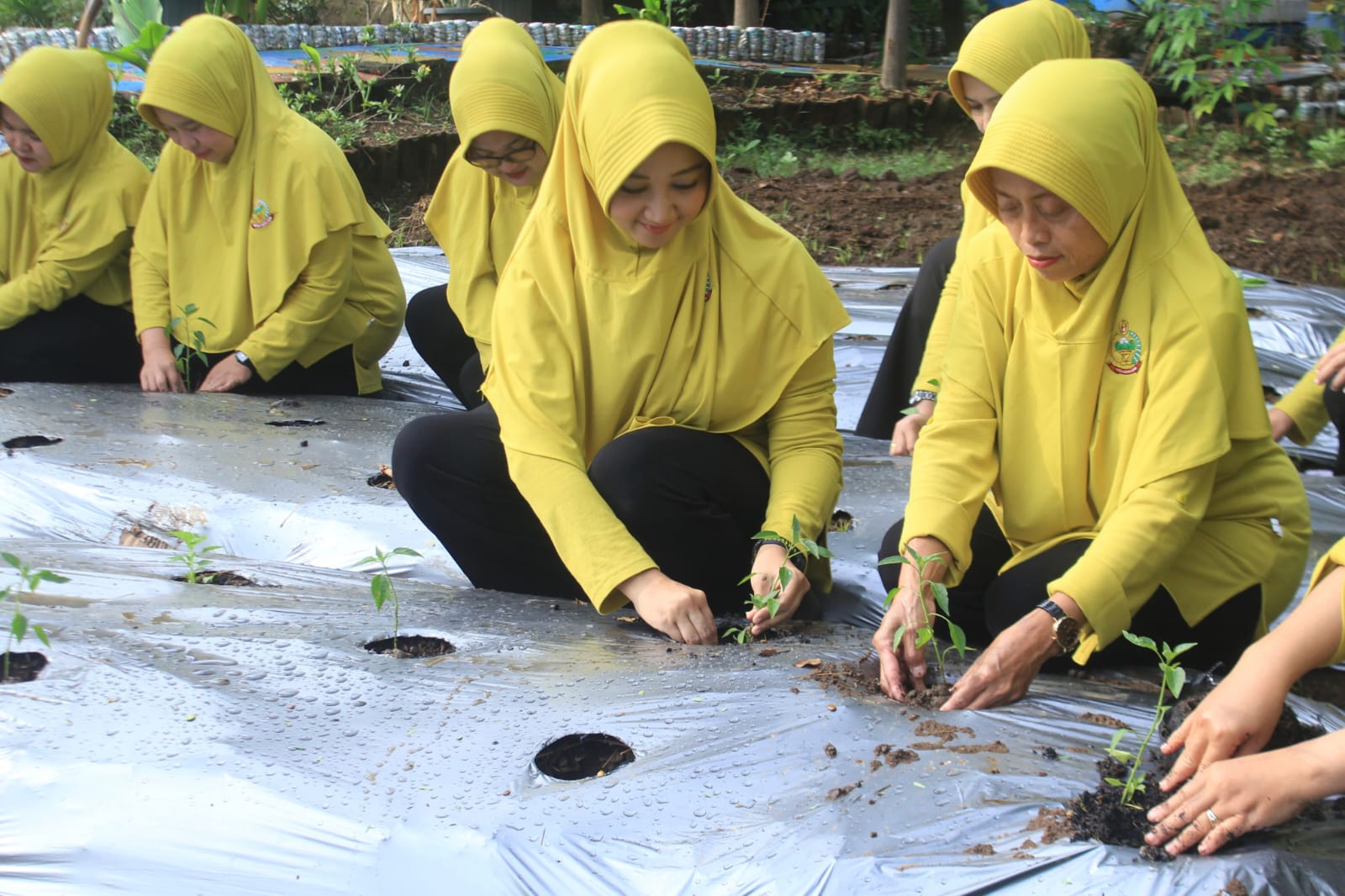 “Lahan ini sayang kalau dibiarkan. Kita tanami cabai untuk membantu ketahanan pangan, sekaligus memberi contoh bahwa setiap rumah pun bisa memulai,” ujar Ny. Adhita penuh optimisme.