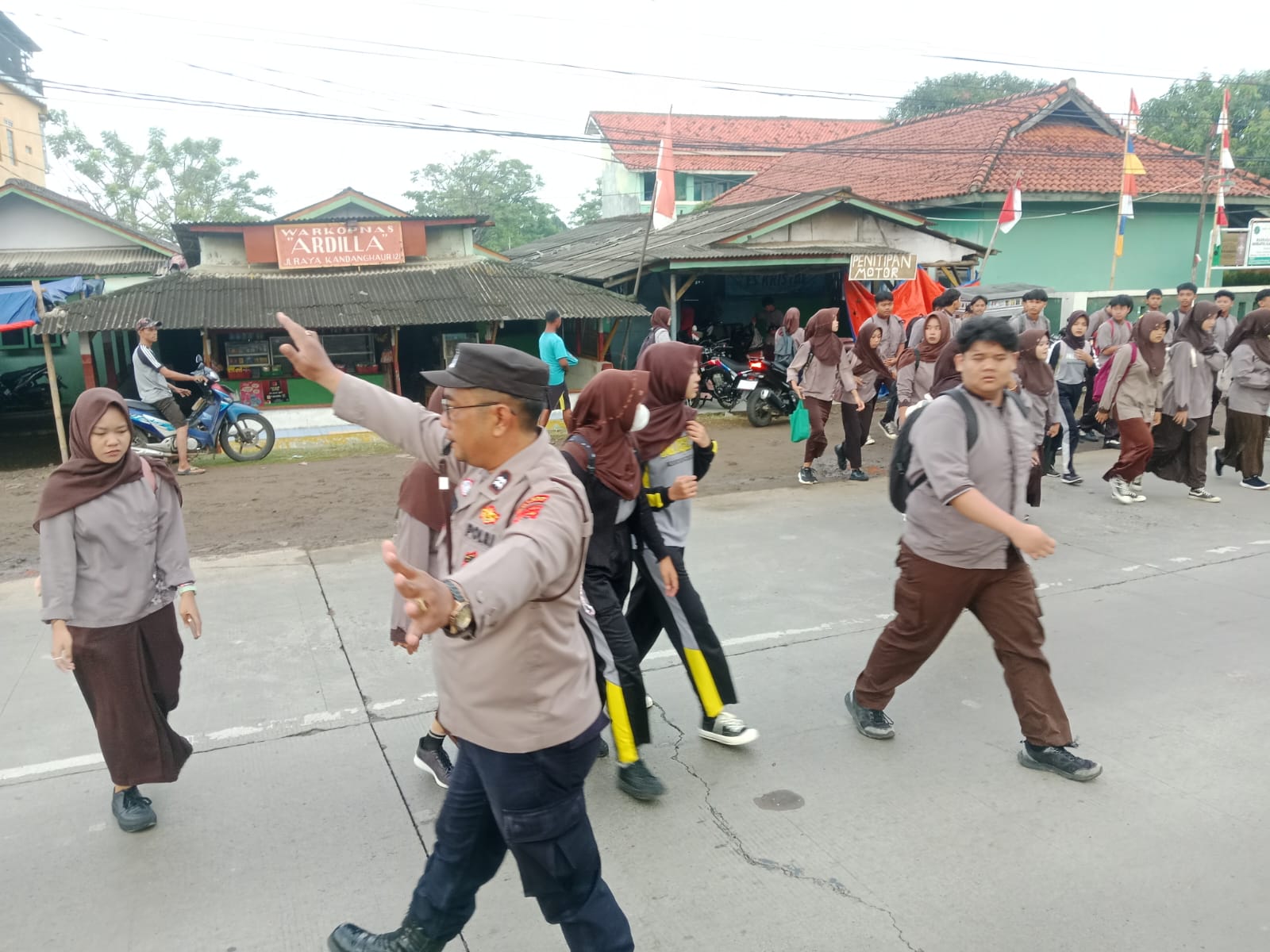 Indramayu – Wujud nyata kepedulian Polri terhadap keselamatan anak-anak di lingkungan sekolah ditunjukkan oleh Bhabinkamtibmas Polsek Kandanghaur, Polres Indramayu Polda Jabar AIPDA Demi Sentosa, yang sigap membantu pelajar menyebrang jalan di Jl. Raya Kandanghaur depan SMPN 1 Kandanghaur, Kecamatan Kandanghaur, Kabupaten Indramayu, Rabu (20/8/2025) pagi.