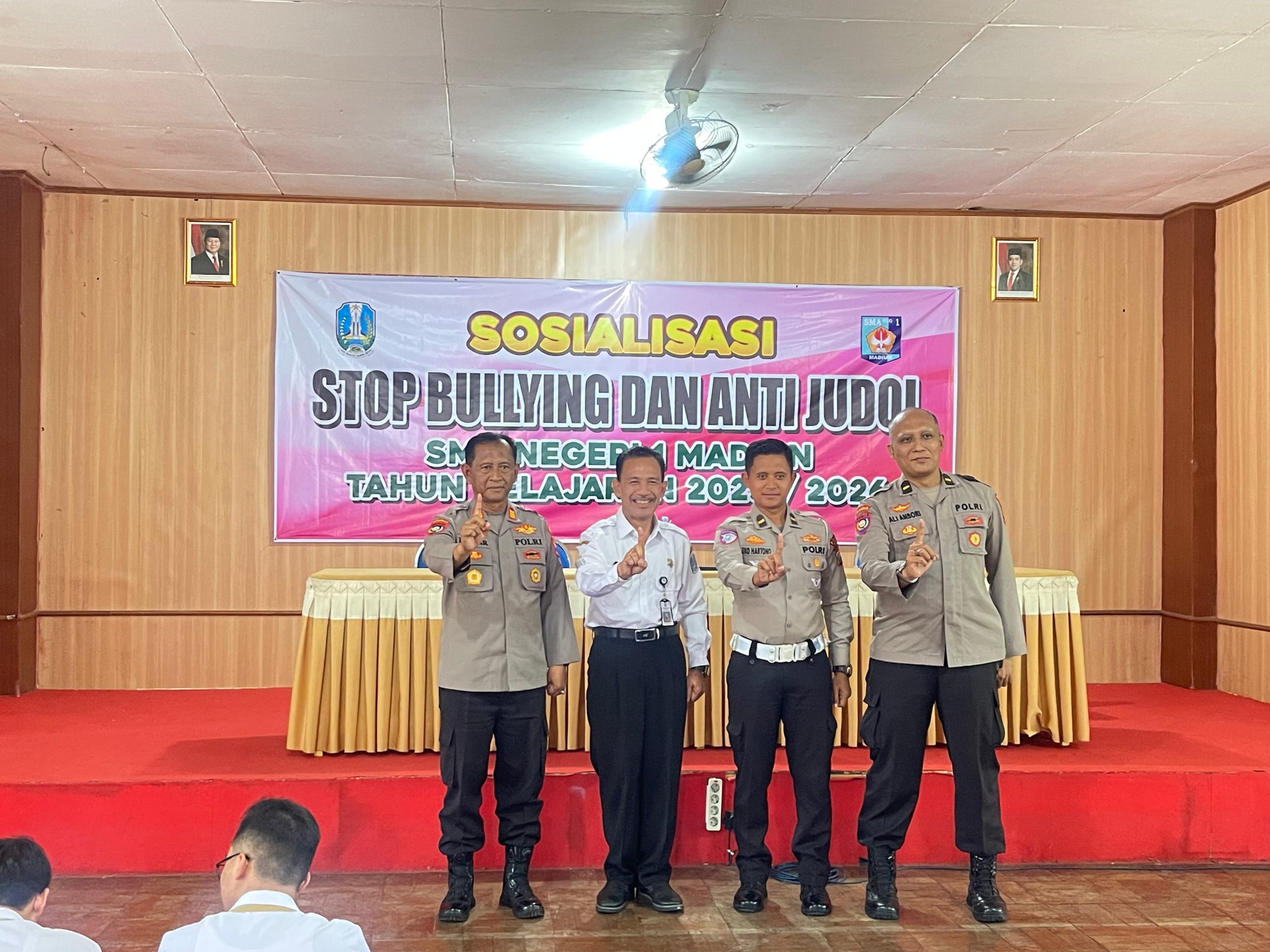 MADIUN , BUSERJATIM.COM GROUP – Satbinmas Polres Madiun Kota menggelar sosialisasi bertema Stop Bullying dan Anti Judi Online di SMA Negeri 1 Madiun, Rabu (20/8/2025). Kegiatan yang berlangsung di aula sekolah ini diikuti siswa-siswi kelas XI.