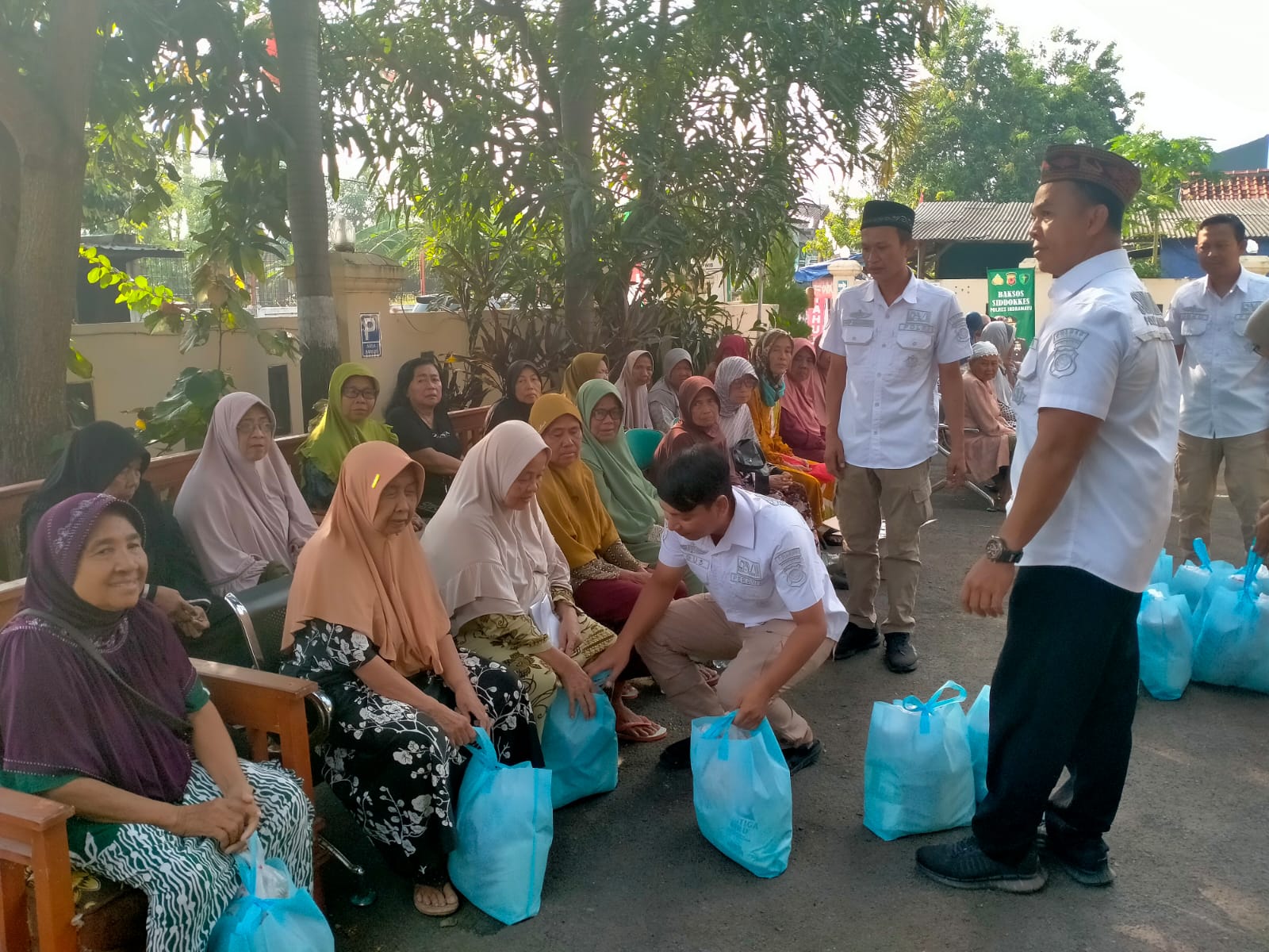 Sebanyak 50 orang jompo, mayoritas ibu-ibu lanjut usia di atas 60 tahun, menerima bantuan berupa paket sembako.