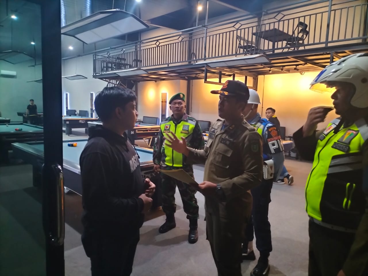 Patroli kemudian berlanjut ke QF Pool & Kafe dan Billiards di Jalan Alun-Alun Timur untuk memastikan ketertiban kegiatan usaha di kawasan tersebut.