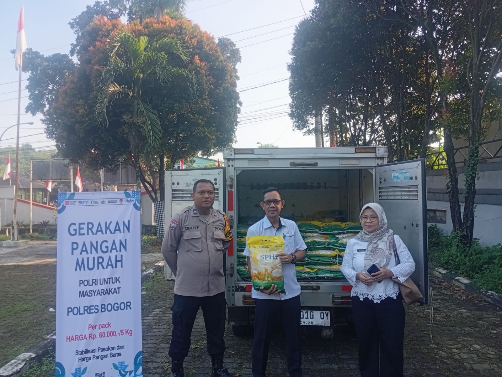 BOGOR – Personel Polsek Cibinong Polres Bogor melaksanakan kegiatan penjualan beras Bulog langsung kepada masyarakat dengan harga murah dan terjangkau. Kegiatan ini merupakan dukungan terhadap program pemerintah Gerakan Pangan Murah yang bertujuan membantu masyarakat dalam memenuhi kebutuhan pokok sehari-hari.