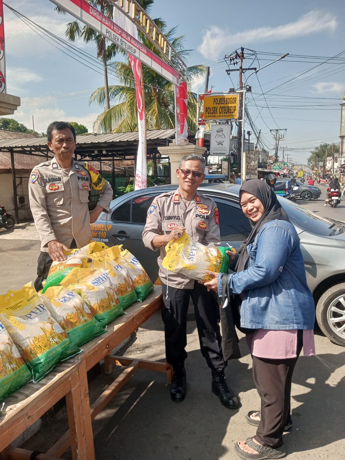 BOGOR – Polsek Citeureup Polres Bogor Polda Jabar melaksanakan kegiatan Gerakan Pangan Murah (GPM) dengan menjual beras SPHP dari Bulog Dramaga. Kegiatan ini dipimpin langsung oleh Kapolsek Citeureup Kompol Eddy Santosa, S.Pd., M.H. bersama personel Polsek Citeureup di berbagai titik wilayah hukum Polsek Citeureup, Kamis (28/8/2025).