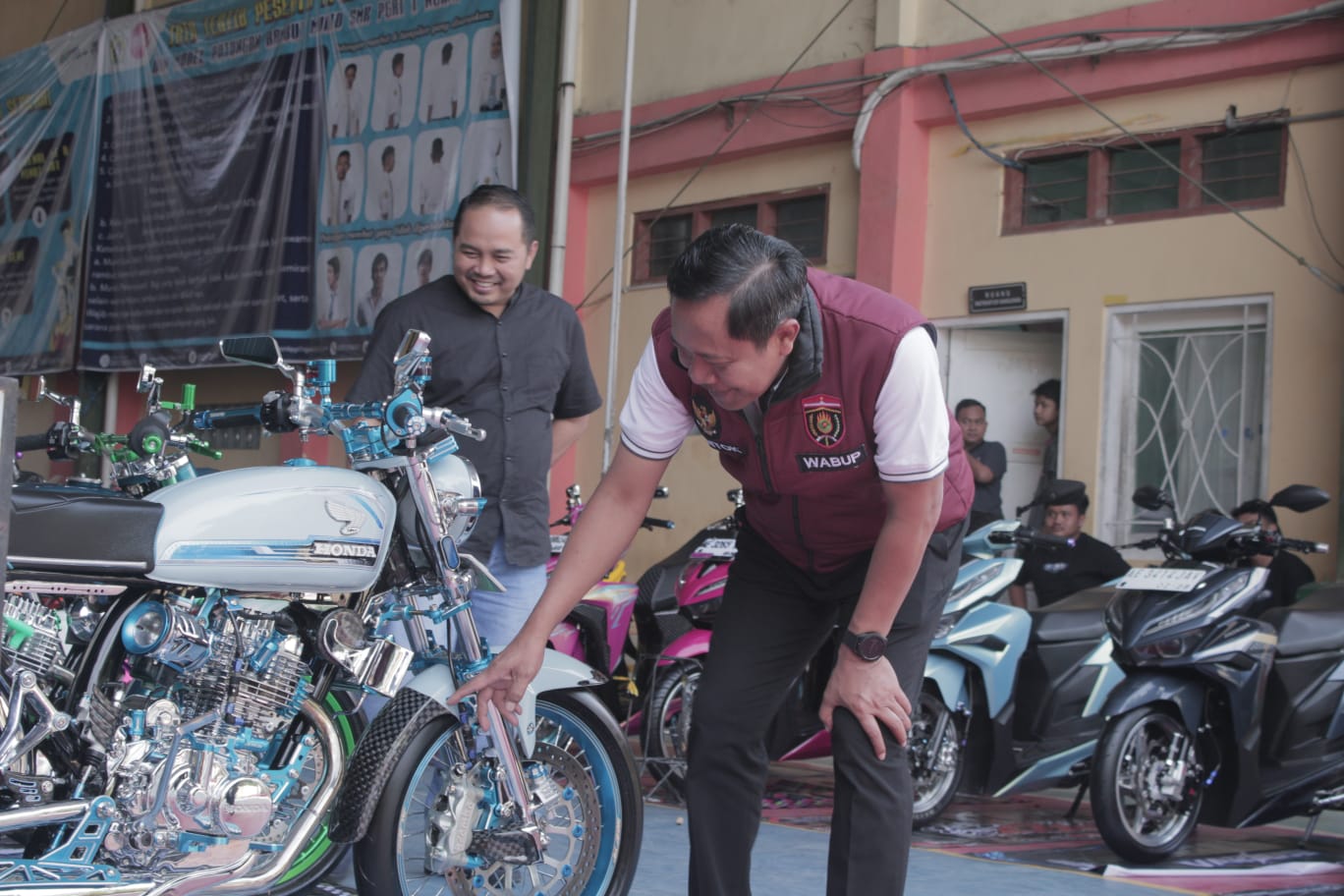 Ngawi, 6 September 2025 – Wakil Bupati Ngawi, Dwi Riyanto Jatmiko, menghadiri sekaligus memberikan apresiasi tinggi pada penyelenggaraan Motorbike Contest yang digelar di SMK PGRI 1 Ngawi, Sabtu (6/9/2025). Ajang ini sukses menarik perhatian dengan diikuti ratusan peserta dari berbagai daerah di karesidenan Madiun.