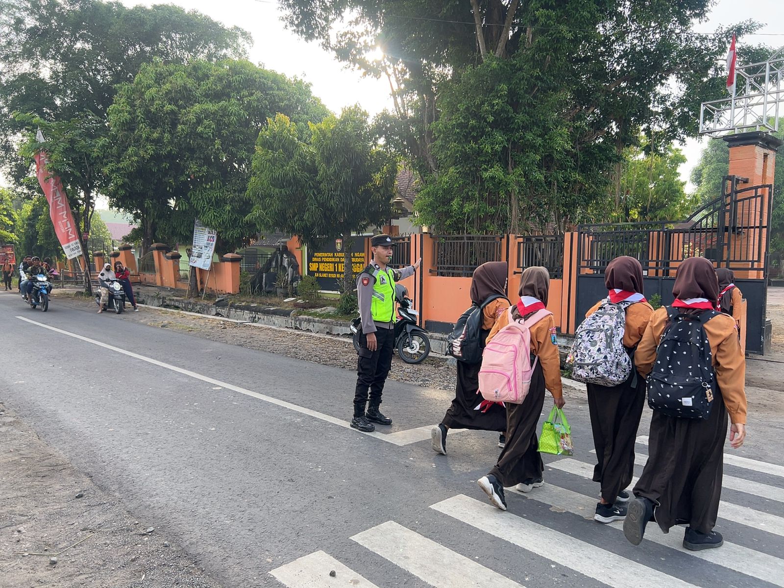 Dalam pelaksanaannya, petugas melakukan pengaturan arus lalu lintas, membantu menyeberangkan siswa sekolah, serta memberikan himbauan dan teguran kepada pengguna jalan agar senantiasa menaati peraturan lalu lintas demi keselamatan bersama.