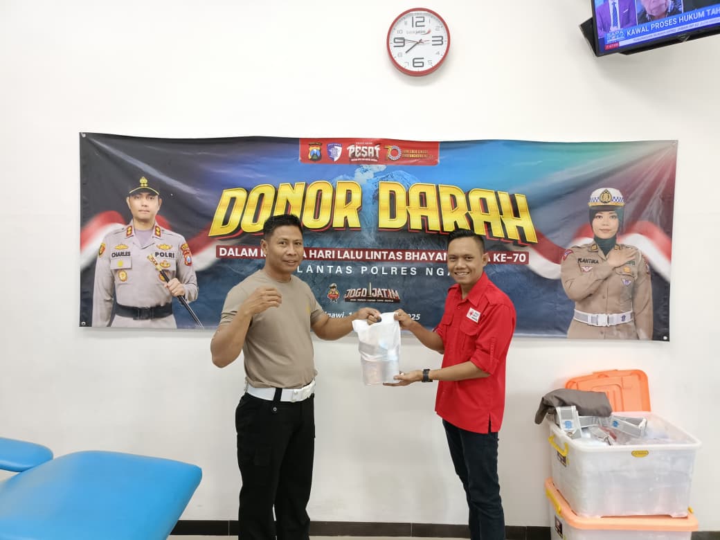NGAWI – Dalam rangka memperingati Hari Keselamatan serta HUT Lalu Lintas Bhayangkara ke-70 tahun 2025, Satlantas Polres Ngawi menggelar kegiatan donor darah, bertempat di kantor PMI Ngawi