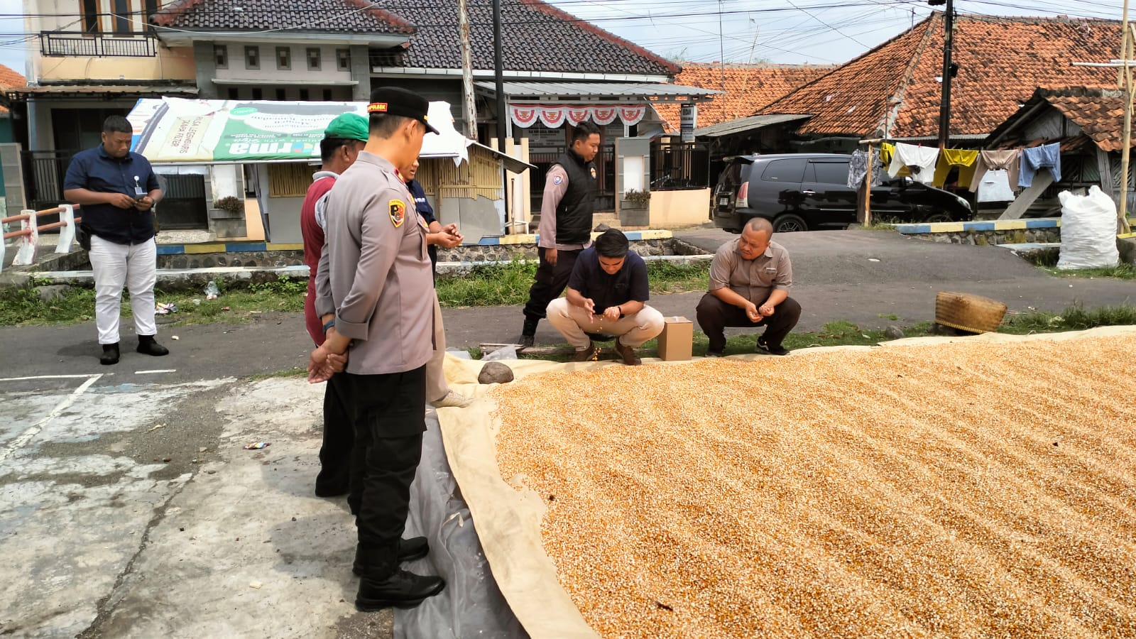 MAJALENGKA – Kapolsek Majalengka Kota IPTU Piki Krismanto, S.H., M.H bersama Polisi Penggerak Ketahanan Pangan Polsek Majalengka Kota Polres Majalengka Polda Jabar mendampingi petugas dari Bulog dalam kegiatan kontrol hasil panen jagung di wilayah Kecamatan Majalengka, Kabupaten Majalengka, Kamis (18/9/2025).