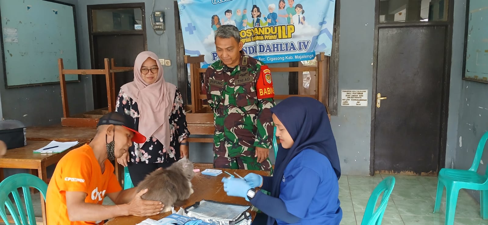Majalengka – Babinsa Desa Tenjolayar, Koramil 1701/Majalengka, Peltu Pupung Andriana, turut mendampingi pelaksanaan penyuntikan vaksin rabies yang digelar di Balai Pertemuan Blok Langensari, Desa Tenjolayar, Kecamatan Cigasong, Kabupaten Majalengka, Kamis (18/9/2025).