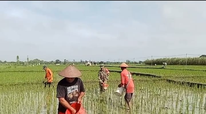 NGAWI, BUSERJATIM.COM GROUP – Babinsa Posramil 0805/17 Pitu Kodim 0805/Ngawi Serka Alip membantu Petani dalam pemupukan tanaman padi di Sawah milik Sdr.Warjono Dsn.Ngedong Desa Papungan Kec.Pitu,  Selasa (23/09/2025).