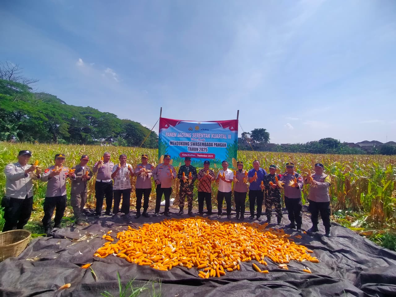 MADIUN, BUSERJATIM.COM GROUP – Polres Madiun Kota bersama masyarakat melakukan panen jagung di lahan pertanian kawasan Ciliwung, Kelurahan Taman, Kecamatan Taman, Kota Madiun pada Rabu (25/9/2025).