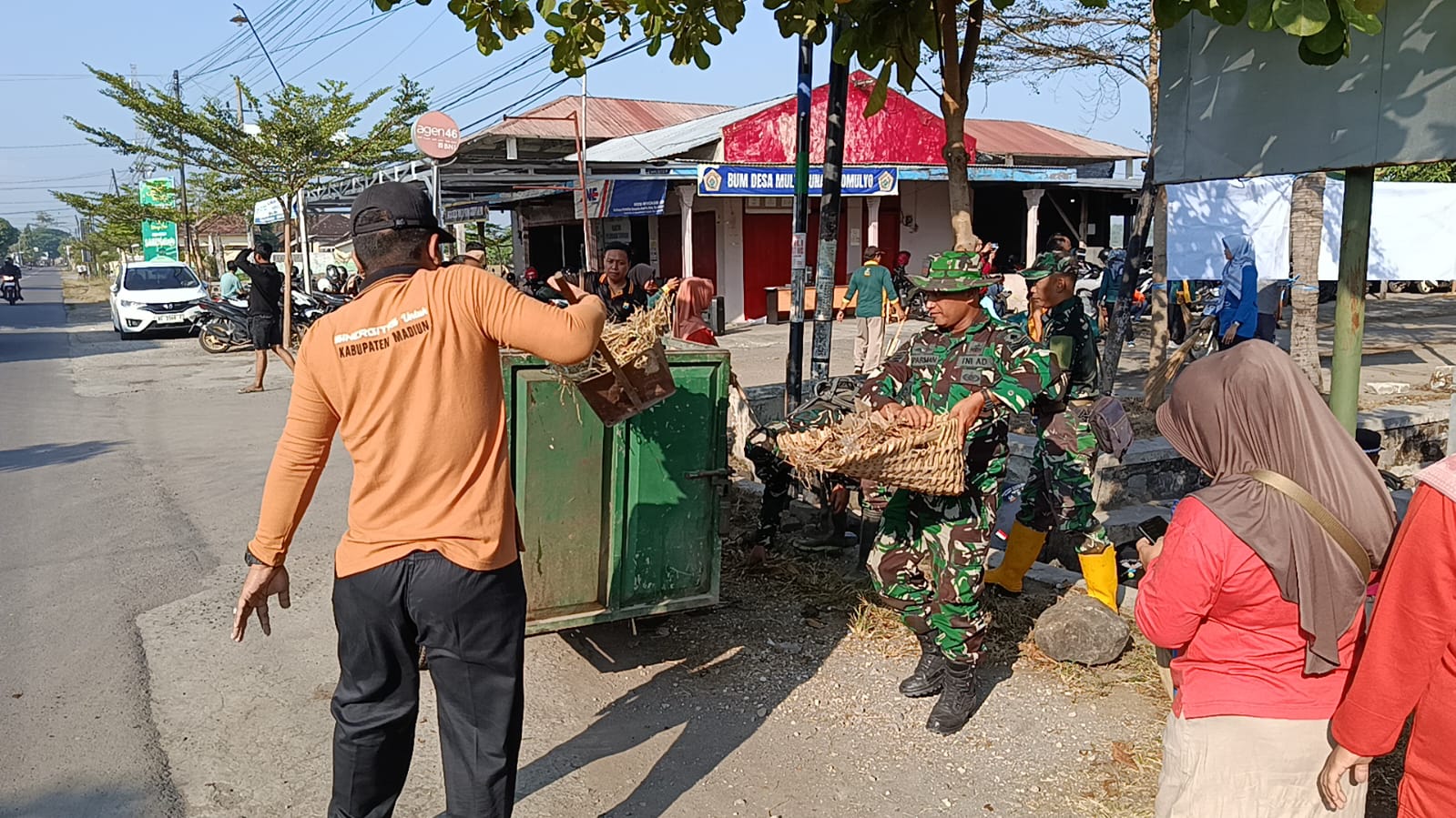 Kegiatan ini diawali dengan karya bakti membersihkan lingkungan pasar yang melibatkan anggota Koramil, aparat desa, serta para pedagang dan warga sekitar. Suasana penuh kebersamaan tampak ketika TNI dan masyarakat bahu-membahu menciptakan lingkungan pasar yang lebih bersih, rapi, dan nyaman.