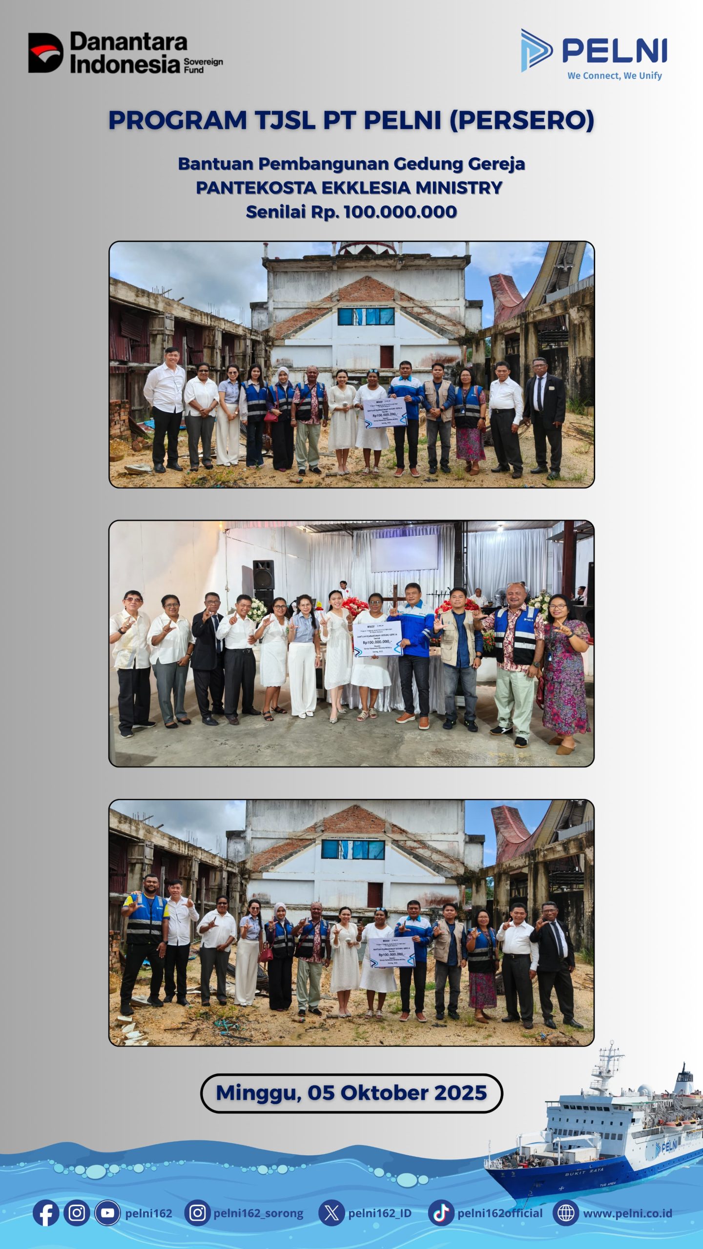PT Pelni Persero selama ini aktif dalam mendukung berbagai bidang pembangunan sosial, pendidikan, lingkungan, dan keagamaan, khususnya di wilayah Indonesia Timur. Dengan dukungan dari Pelni, diharapkan pembangunan Gereja Pantekosta dapat berjalan lebih optimal, memberikan manfaat jangka panjang, serta memperkuat peran gereja sebagai pusat kegiatan spiritual dan sosial masyarakat setempat.