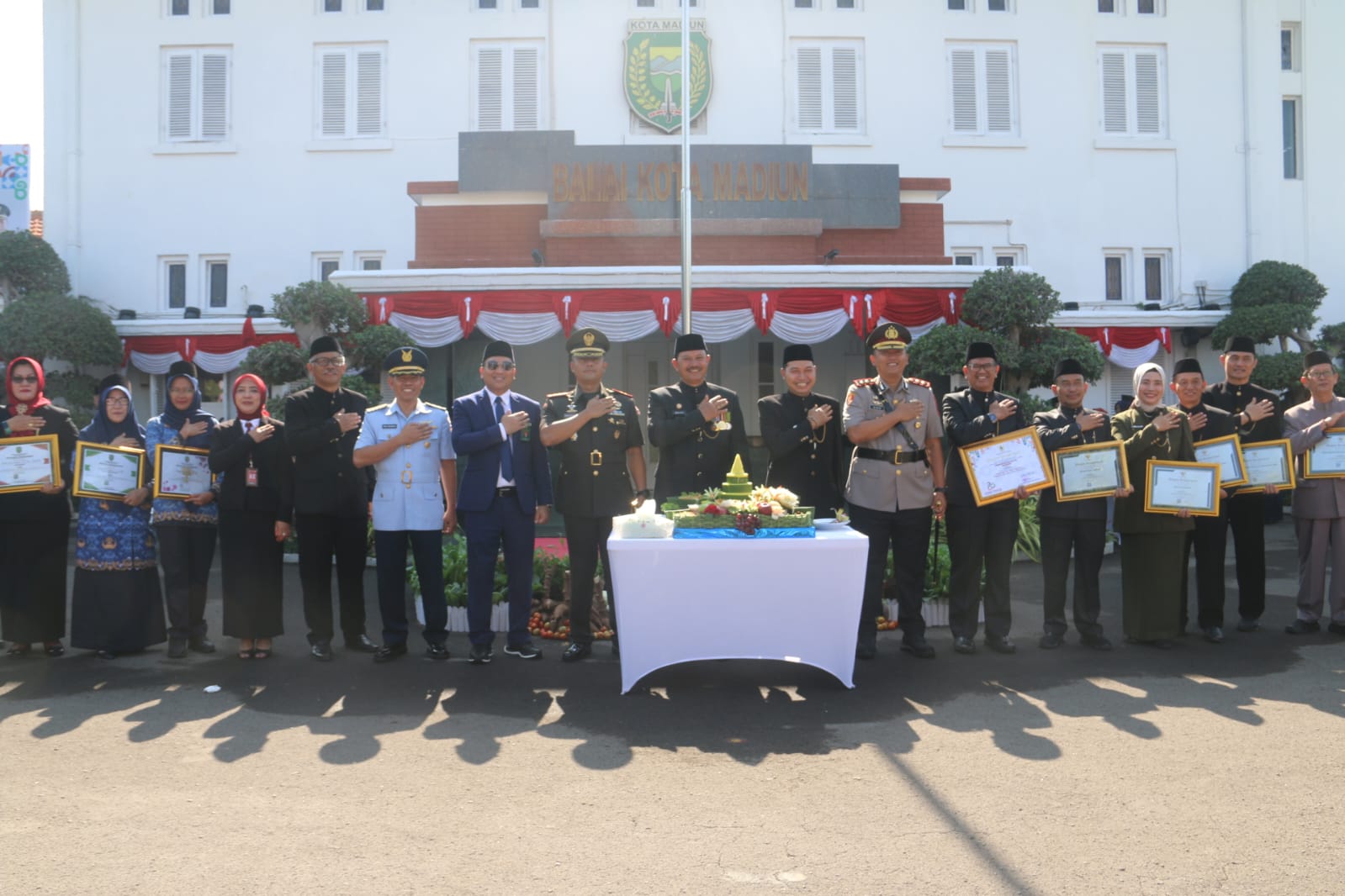 Upacara yang berlangsung khidmat tersebut dihadiri oleh jajaran Forum Koordinasi Pimpinan Daerah (Forkopimda) Kota Madiun, pejabat pemerintah daerah, serta perwakilan dari berbagai instansi dan elemen masyarakat. Seluruh peserta tampak antusias mengikuti jalannya upacara dengan penuh semangat kebersamaan dan rasa bangga sebagai warga Jawa Timur.
