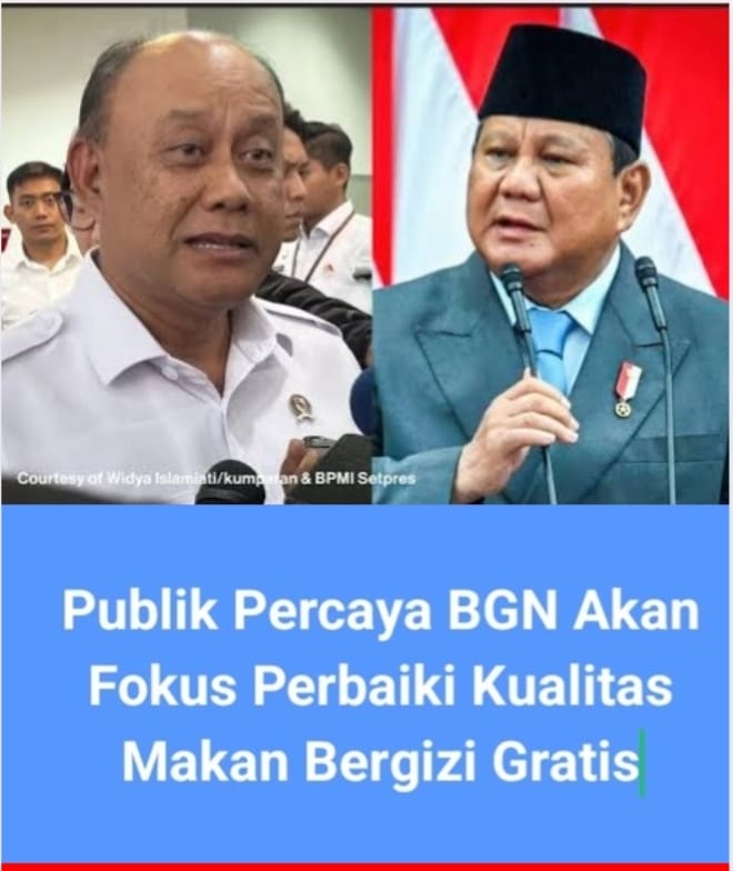 Publik yakin dan percaya bahwa BGN terus meningkatkan komitmennya untuk memperkuat pemantauan dan pengawasan terhadap pelaksanaan Program Makan Bergizi Gratis (MBG), dengan berbagai cara antara lain dengan mengembangkan sistem pengawasan berlapis, pelatihan rutin, dan kerja sama lintas sektor demi menjamin mutu, keamanan, serta kesinambungan program di seluruh wilayah Indonesia. Selain itu BGN memberikan pelatihan rutin kepada penjamah makanan untuk memastikan penerapan prinsip keamanan pangan yang sesuai standar.