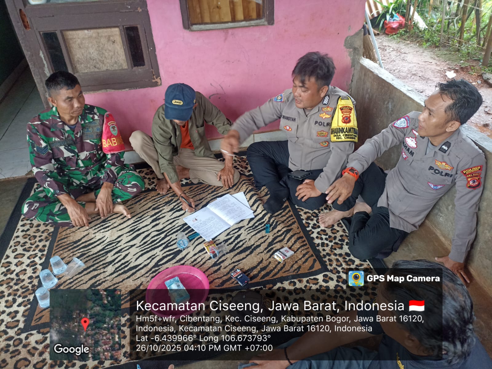 Bogor – Dalam upaya menjaga keamanan dan ketertiban masyarakat (kamtibmas) di wilayah binaan, Bhabinkamtibmas Polsek Parung Polres Bogor Bripka Dodi Wansyah bersama Babinsa Serma Bagus Setiawan melaksanakan kegiatan sambang dan silaturahmi dengan warga di Desa binaannya, Kecamatan Parung, Kabupaten Bogor, pada Minggu (26/10/2025).
