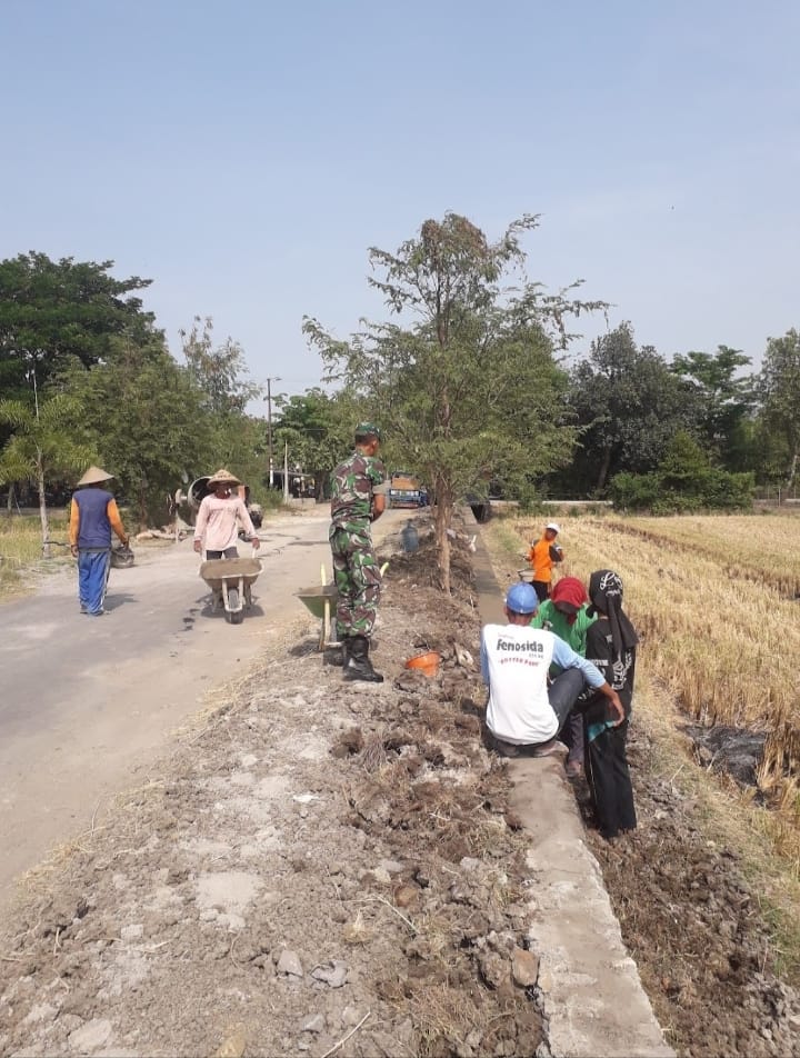 NGAWI, BUSERJATIM.COM GROUP – Babinsa Posramil 0805/19 Kasreman Kodim 0805/Ngawi sertu Joko Susilo melaksanakan gotong royong perbaikan drainase bertempat di Desa Kasreman Kecamatan Kasreman, Rabu (29/10/2025).