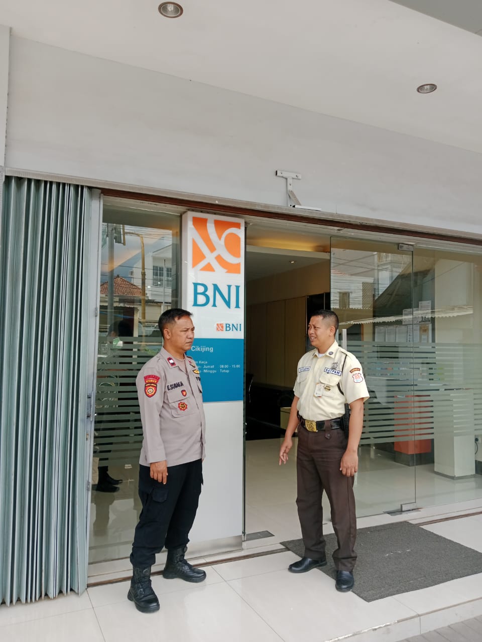Majalengka – Untuk memberikan Pengamanan pada objek vital yang ada di wilayah hukum Polsek Cikijing, Ps. Panit Samapta l Polsek Cikijing Polres Majalengka Polda Jabar, Aiptu Eman Subagja melaksanakan Patroli ke Bank BNI KLN Cikijing, Jum’at (31/10/2025).