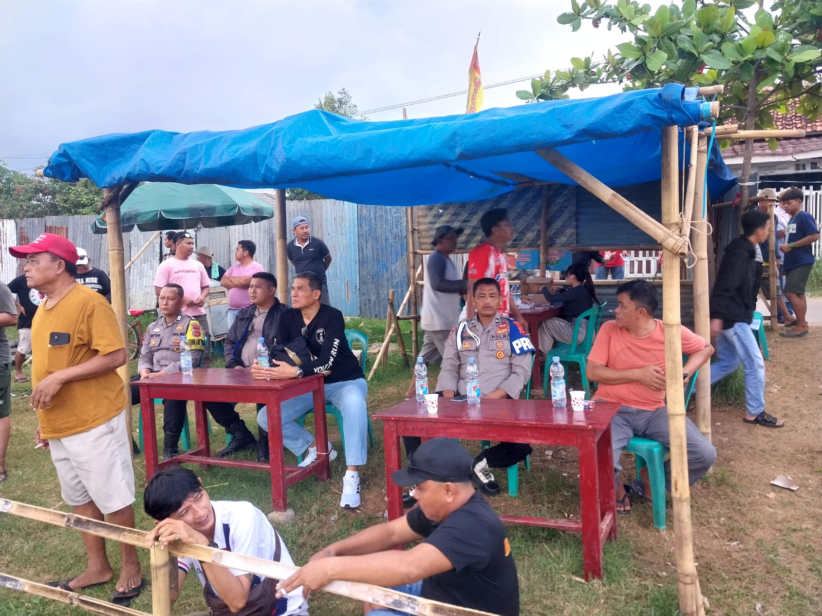Indramayu,- Personil Polsek Gabuswetan pengamanan pertandingan sepakbola babak 16 besar dalam rangka Turnamen Sepak Bola Kuwu Cup Desa Babakanjaya Tahun 2025.