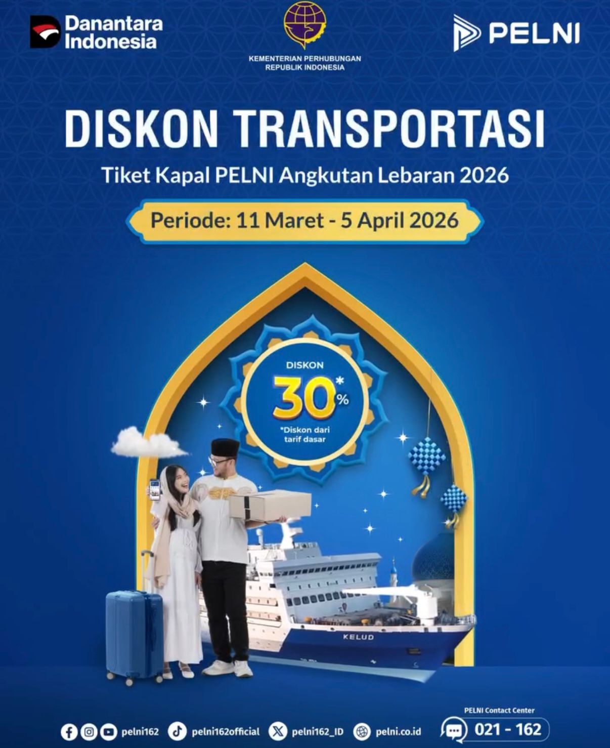 Selanjutnya Direktur Utama PT PELNI (Persero), Tri Andayani, menegaskan bahwa perseroan mendukung penuh kebijakan pemerintah pusat melalui Kementerian Perhubungan dalam memberikan keringanan biaya transportasi laut kepada masyarakat. Diskon sebesar 30 persen diberikan dari tarif dasar kelas ekonomi dan berlaku untuk keberangkatan mulai 11 Maret hingga 5 April 2026.