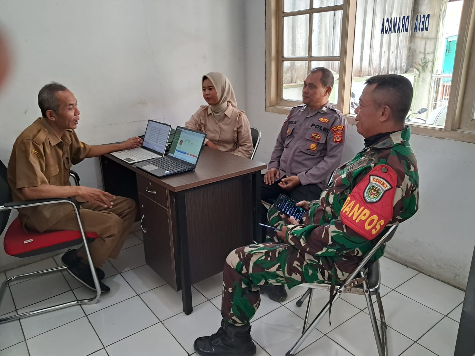 Bhabinkamtibmas Polsek Dramaga Polres Bogor Bersama Babinsa Sambangi Kantor Desa Binaan Dalam Rangka Cooling System Kamtibmas Yang Kondusif