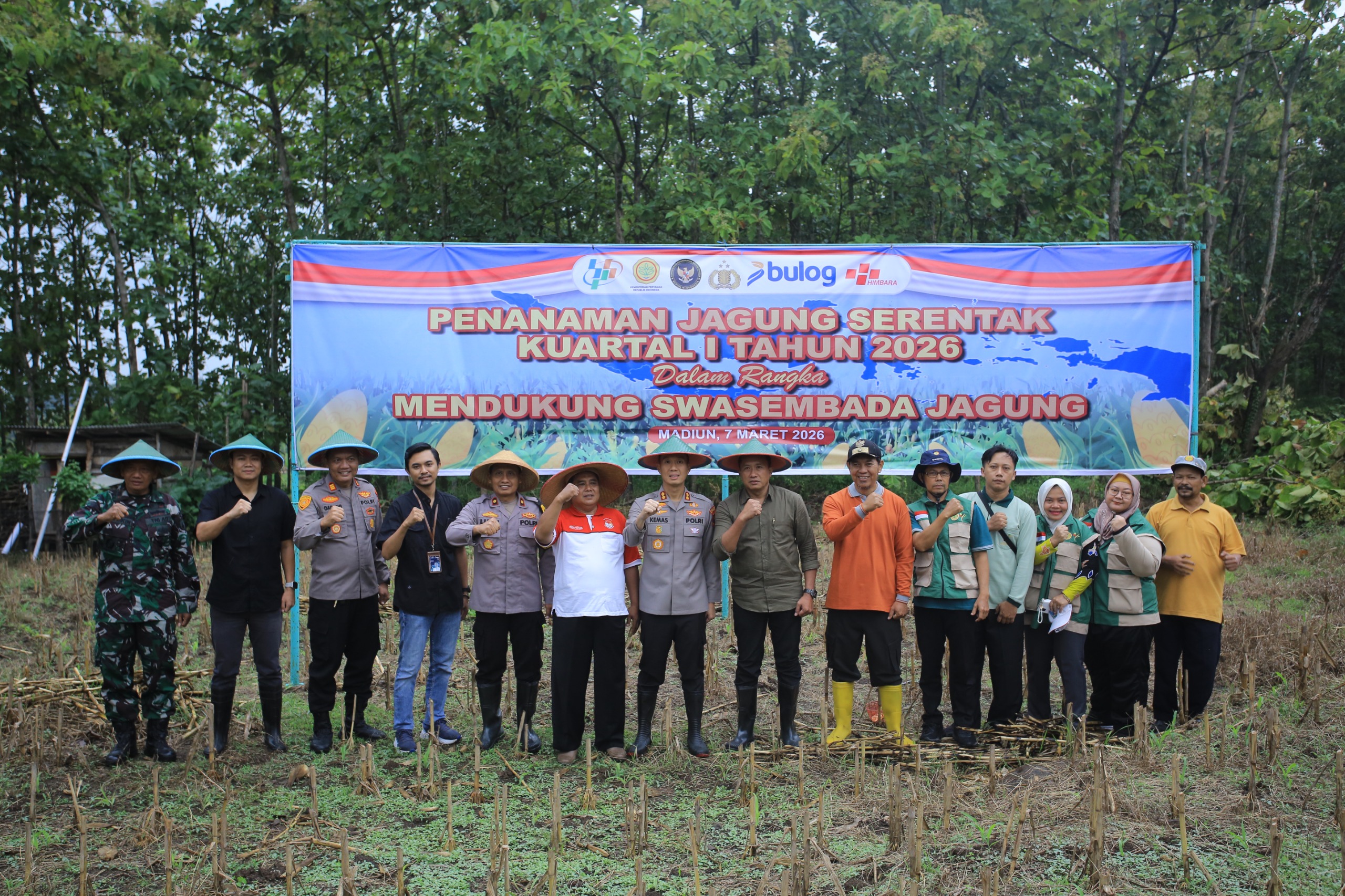 Madiun – Polres Madiun melaksanakan kegiatan penanaman jagung serentak kuartal I sebagai bentuk dukungan terhadap program ketahanan pangan nasional. Kegiatan tersebut berlangsung di lahan pertanian yang berlokasi di Jalan Raya Sareng, Desa Sareng, Kecamatan Geger, Kabupaten Madiun, Sabtu ( 7/3 2026).
