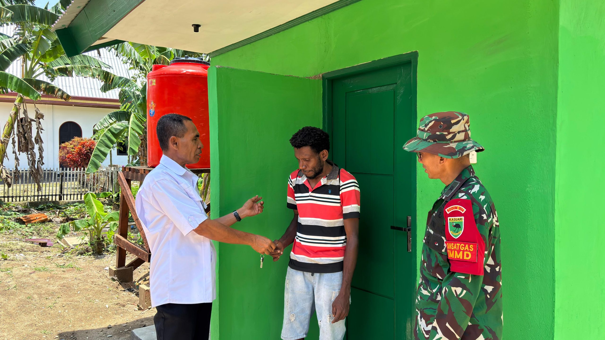 Dalam kegiatan tersebut, Agus Duwila tidak hanya melakukan pengecekan kondisi bangunan, tetapi juga secara simbolis menyerahkan kunci MCK Gereja serta MCK umum yang berada di samping rumah warga, Bapak Yosep. Fasilitas ini merupakan salah satu hasil pembangunan fisik TMMD ke-127 yang ditujukan untuk meningkatkan kualitas sanitasi dan kesehatan masyarakat di Kampung Sisir.