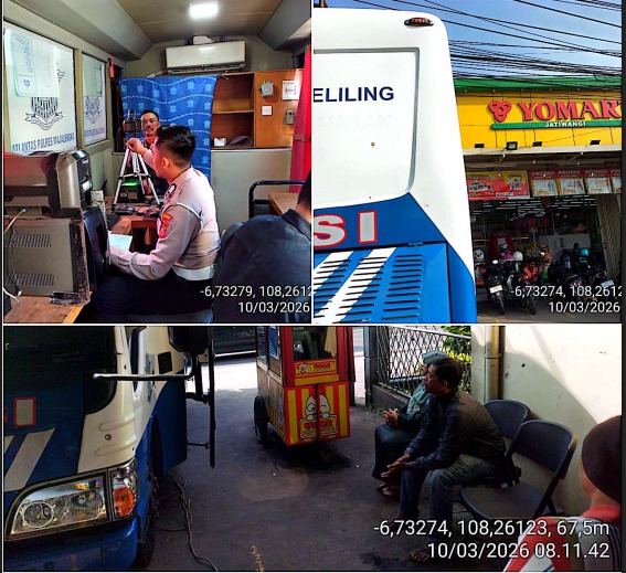 Majalengka, Satuan Lalu Lintas (Sat Lantas) Polres Majalengka terus berkomitmen memberikan pelayanan prima dan kemudahan bagi masyarakat dalam pengurusan administrasi berkendara. Pada Rabu (11/3/2026), unit layanan SIM Keliling hadir menyapa warga di halaman Yomart Jatiwangi, Kecamatan Jatiwangi, Kabupaten Majalengka.