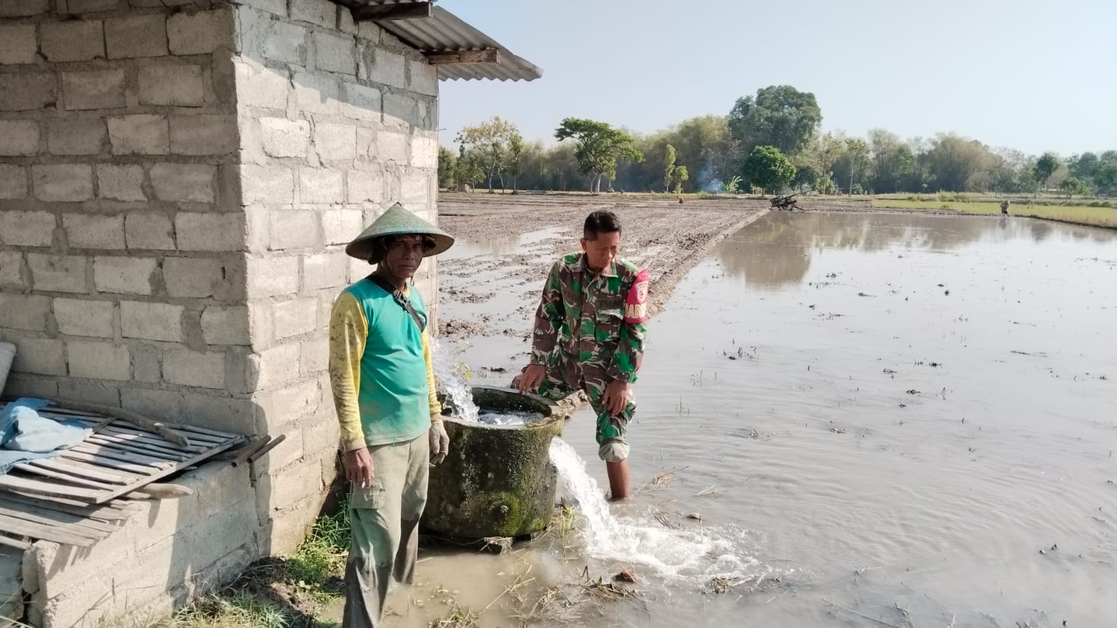 Kegiatan tersebut dilaksanakan di Desa Mojorejo, Kecamatan Kebonsari, Kabupaten Madiun, bersama seorang petani setempat, Suyanto. Sertu Yudi tampak mendampingi proses perawatan tanaman padi guna memastikan pertumbuhan tanaman berjalan optimal.