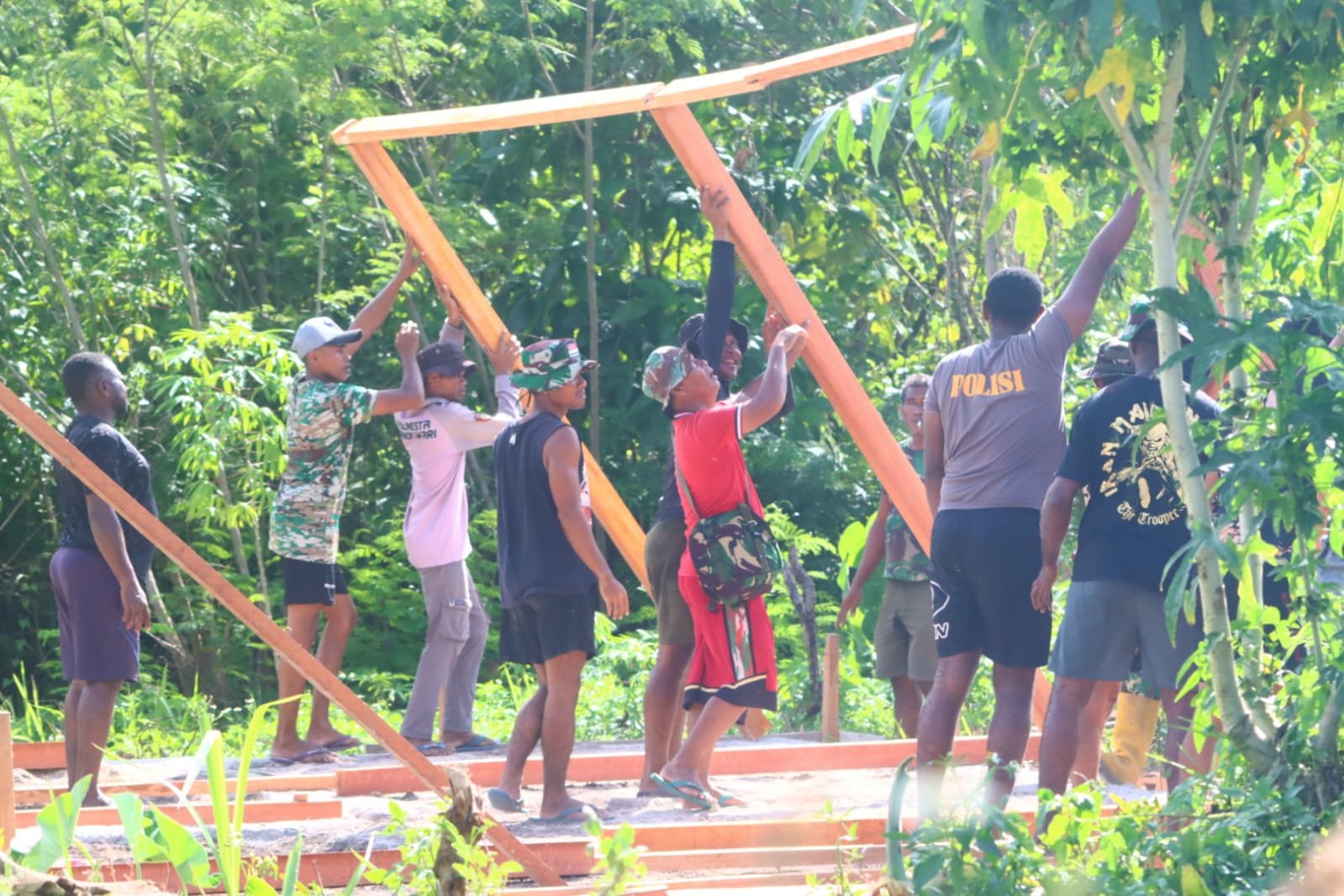 ‎Semangat gotong royong juga ditunjukkan oleh Yulianus yang turut terlibat langsung dalam proses pembangunan rumahnya. Kebersamaan ini menjadi wujud nyata kemanunggalan TNI dengan rakyat yang terus terjaga.
