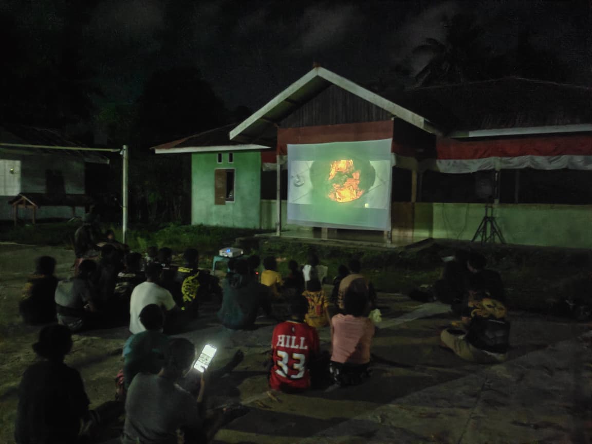 ‎Satgas TMMD Reguler ke-128 Kodim 1801/Manokwari menayangkan film perjuangan melawan penjajah.