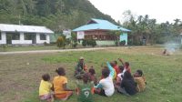 Hangatnya Kebersamaan Satgas TMMD 127 Kodim 1804/Kaimana, Babinsa Tanamkan Wawasan Kebangsaan kepada Anak-anak Kampung Marsi